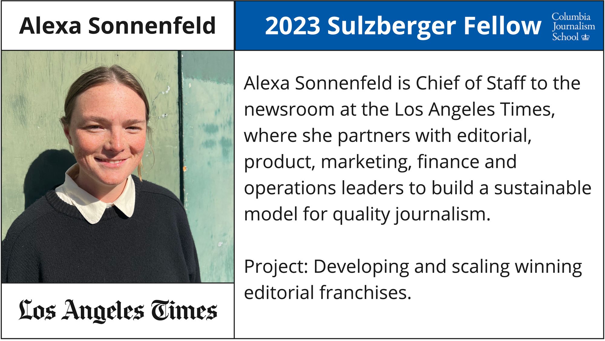 - Alexa Sonnenfeld - Chief of Staff to the Newsroom, Los Angeles Times