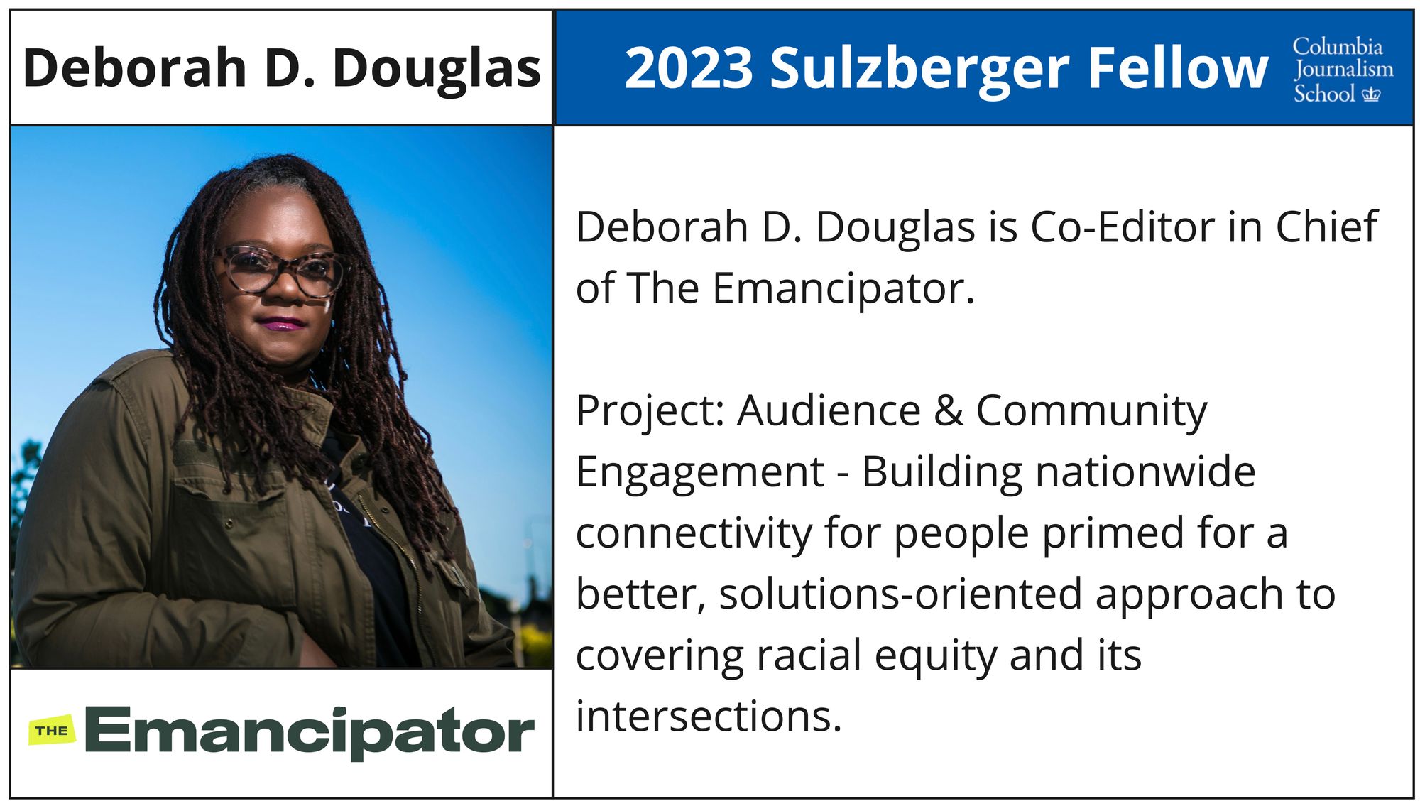 - Deborah D. Douglas - Co-Editor in Chief, The Emancipator (Google News Initiative Scholarship)