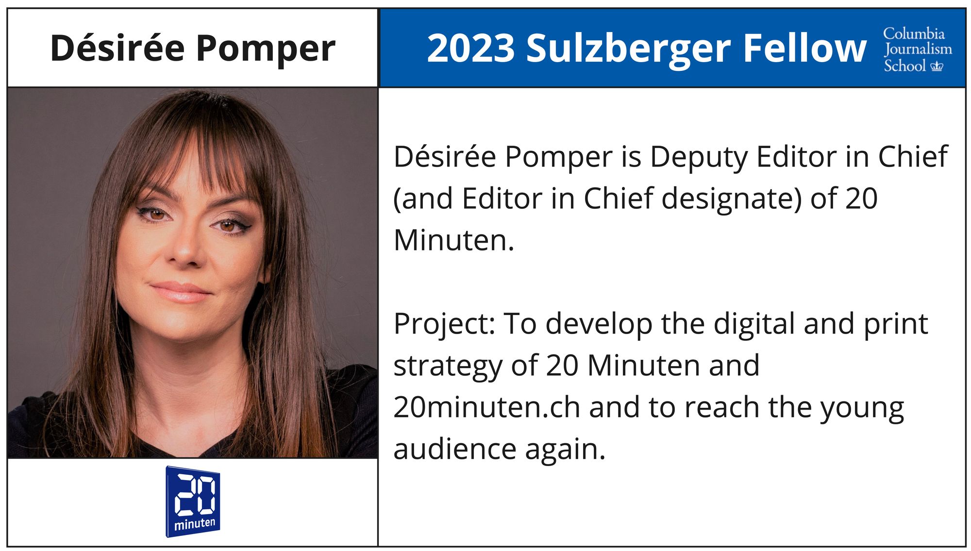 - Désirée Pomper - Deputy Editor in Chief (and Editor in Chief designate), 20 Minuten, TX Group
