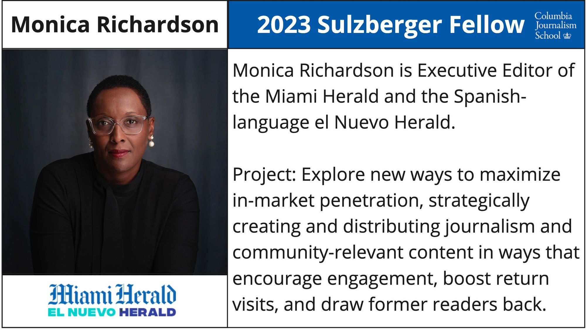 - Monica Richardson - Executive Editor, Miami Herald / El Nuevo Herald & McClatchy Florida Regional Editor, McClatchy Co. (Google News Initiative Scholarship)