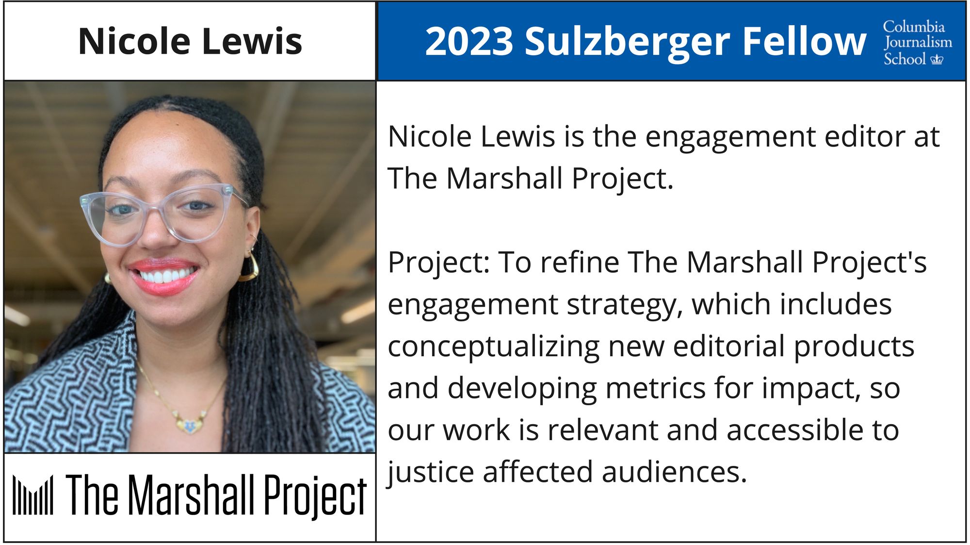 - Nicole Lewis - Engagement Editor, The Marshall Project (Google News Initiative Scholarship)