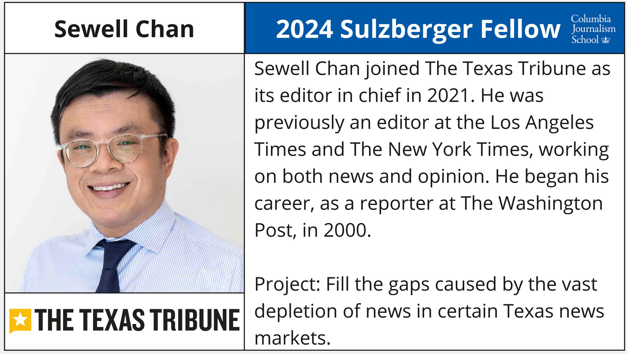 - Sewell Chan - Editor in Chief, The Texas Tribune (Google News Initiative Scholarship)