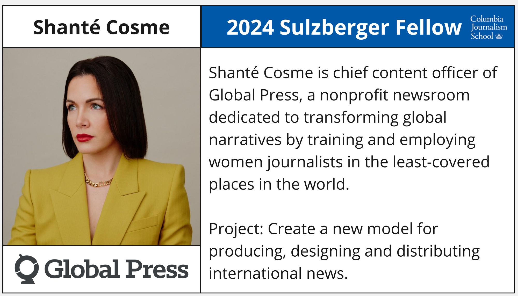- Shanté Cosme - Chief Content Officer, Global Press