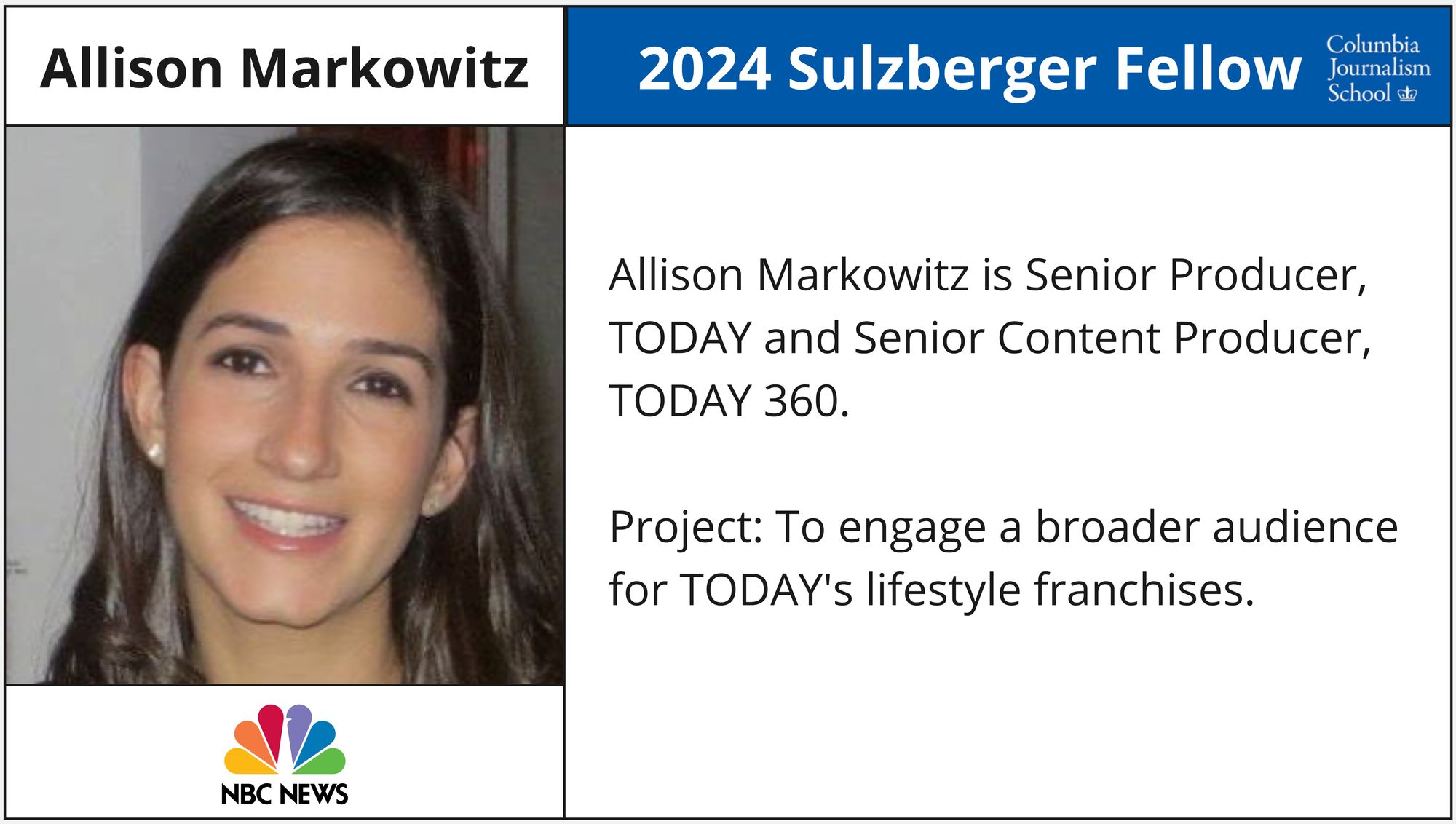 - Allison Markowitz - Senior Producer, TODAY & Senior Content Producer, TODAY 360, NBC News