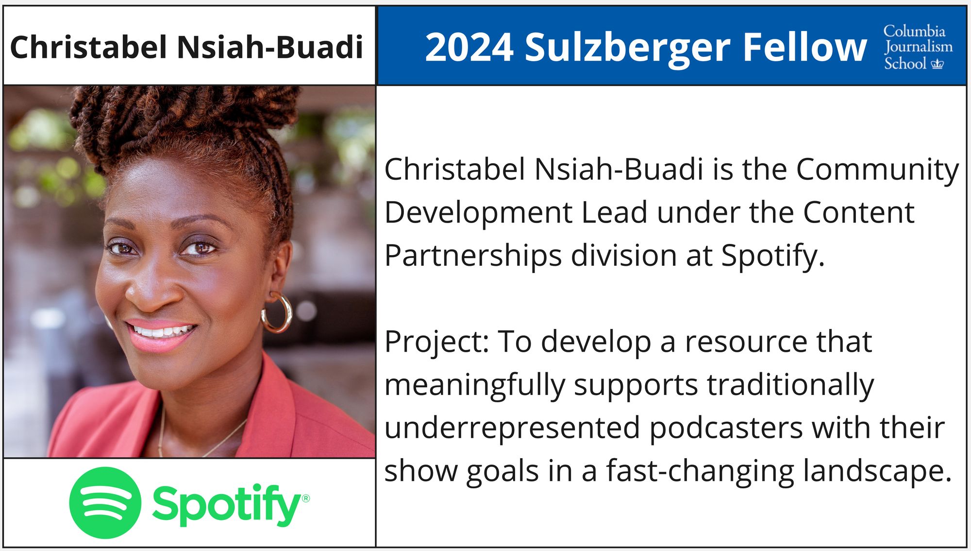 - Christabel Nsiah-Buadi - Community Development Lead, Creator Experience, Spotify (Google News Initiative Scholarship)