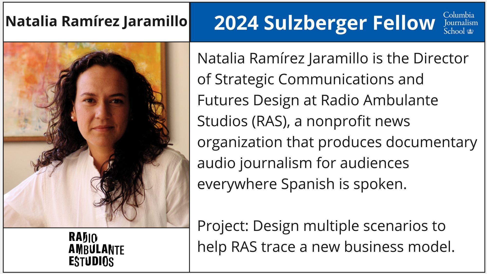 - Natalia Ramírez Jaramillo - Director of Strategic Communication & Futures Design, Radio Ambulante Studios (Google News Initiative Scholarship)