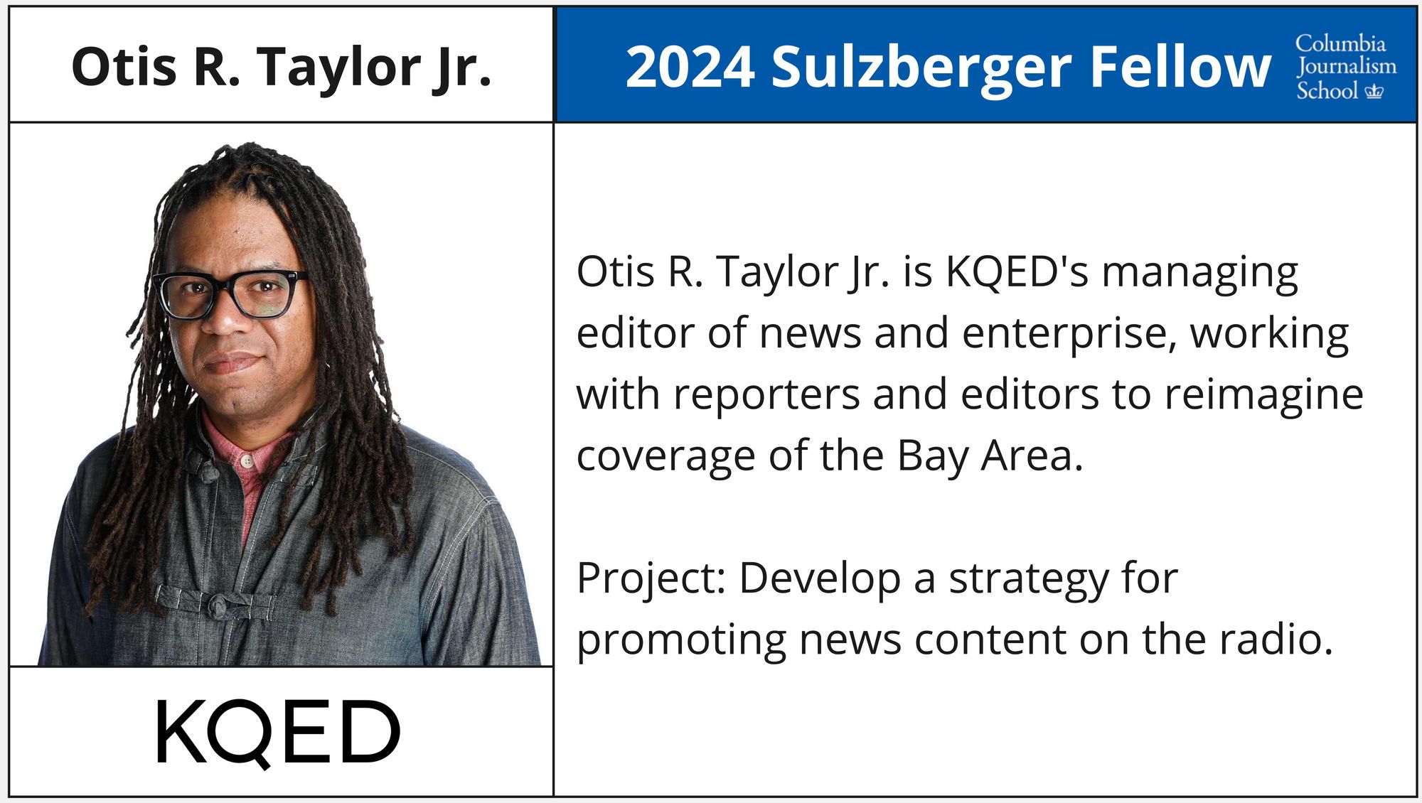 - Otis R. Taylor Jr. - Managing Editor of News & Enterprise, KQED