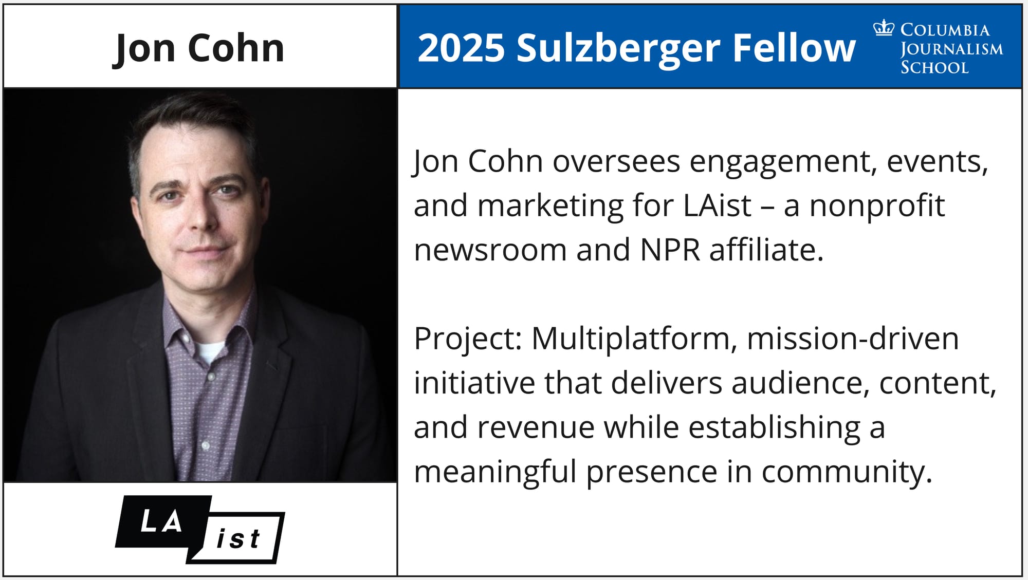 - Jon Cohn - Vice President, Audience & Community Engagement, LAist, Southern California Public Radio