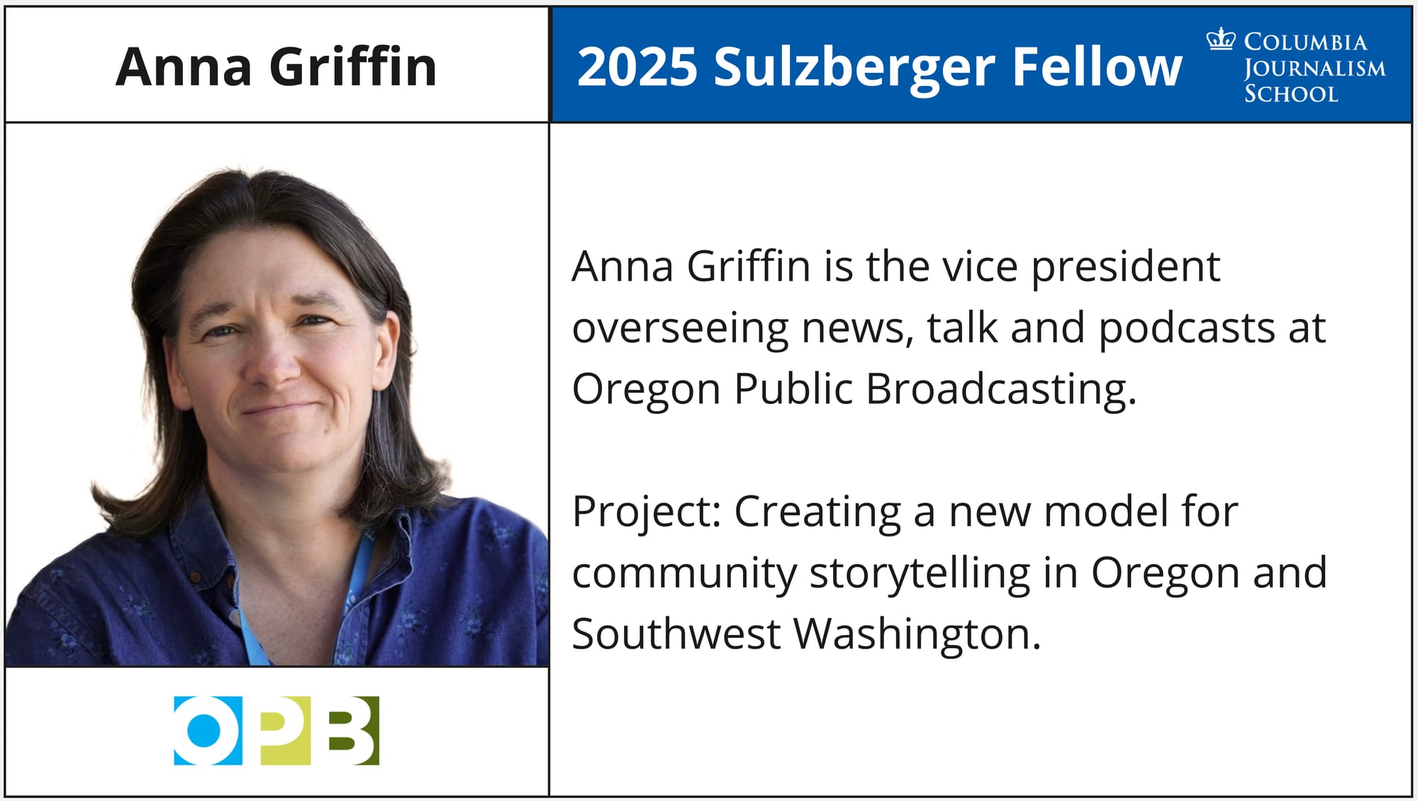 - Anna Griffin - Vice President, News, Talk & Podcasts, Oregon Public Broadcasting