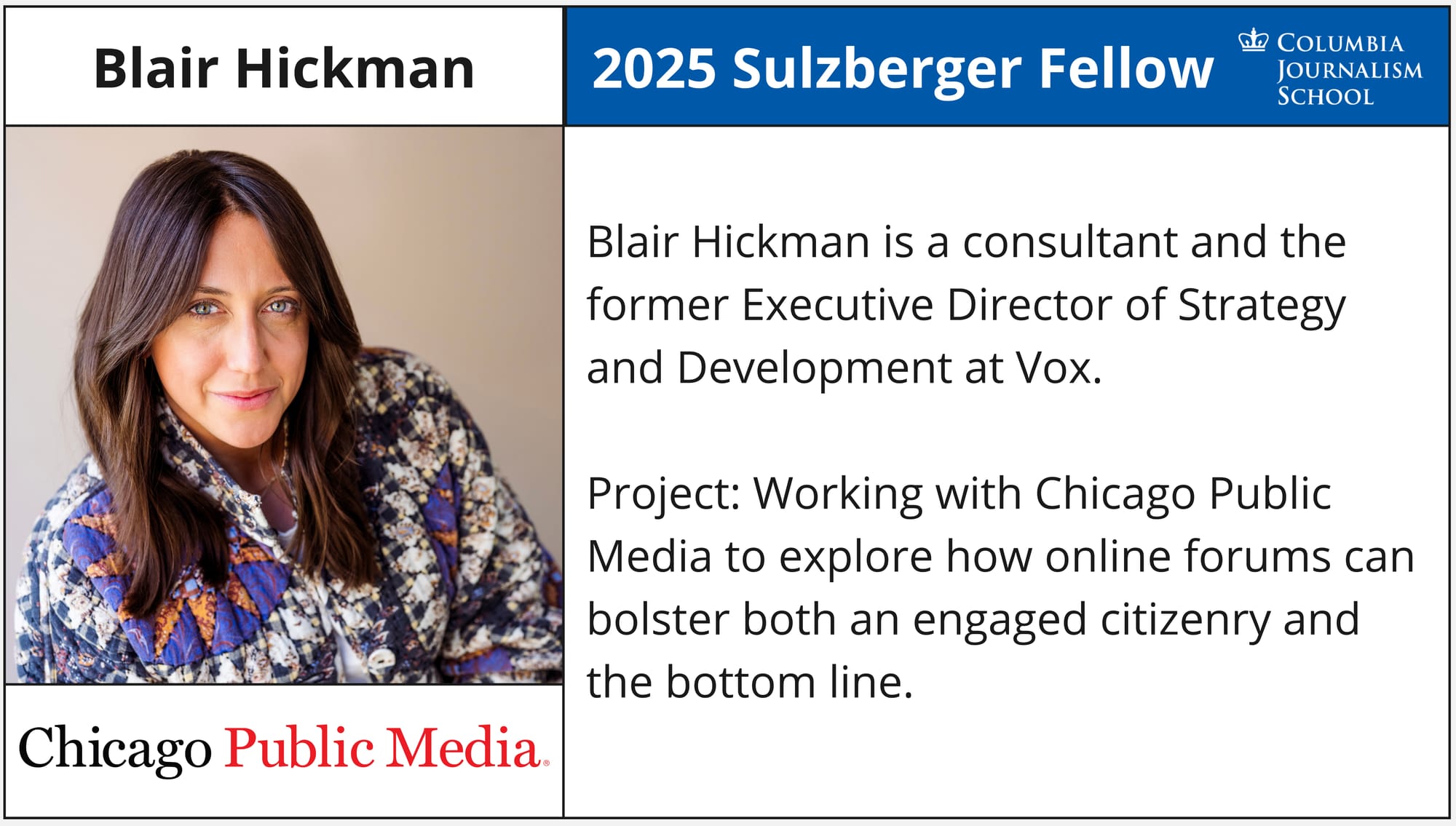 - Blair Hickman - Consultant, Ida Media / Chicago Public Media