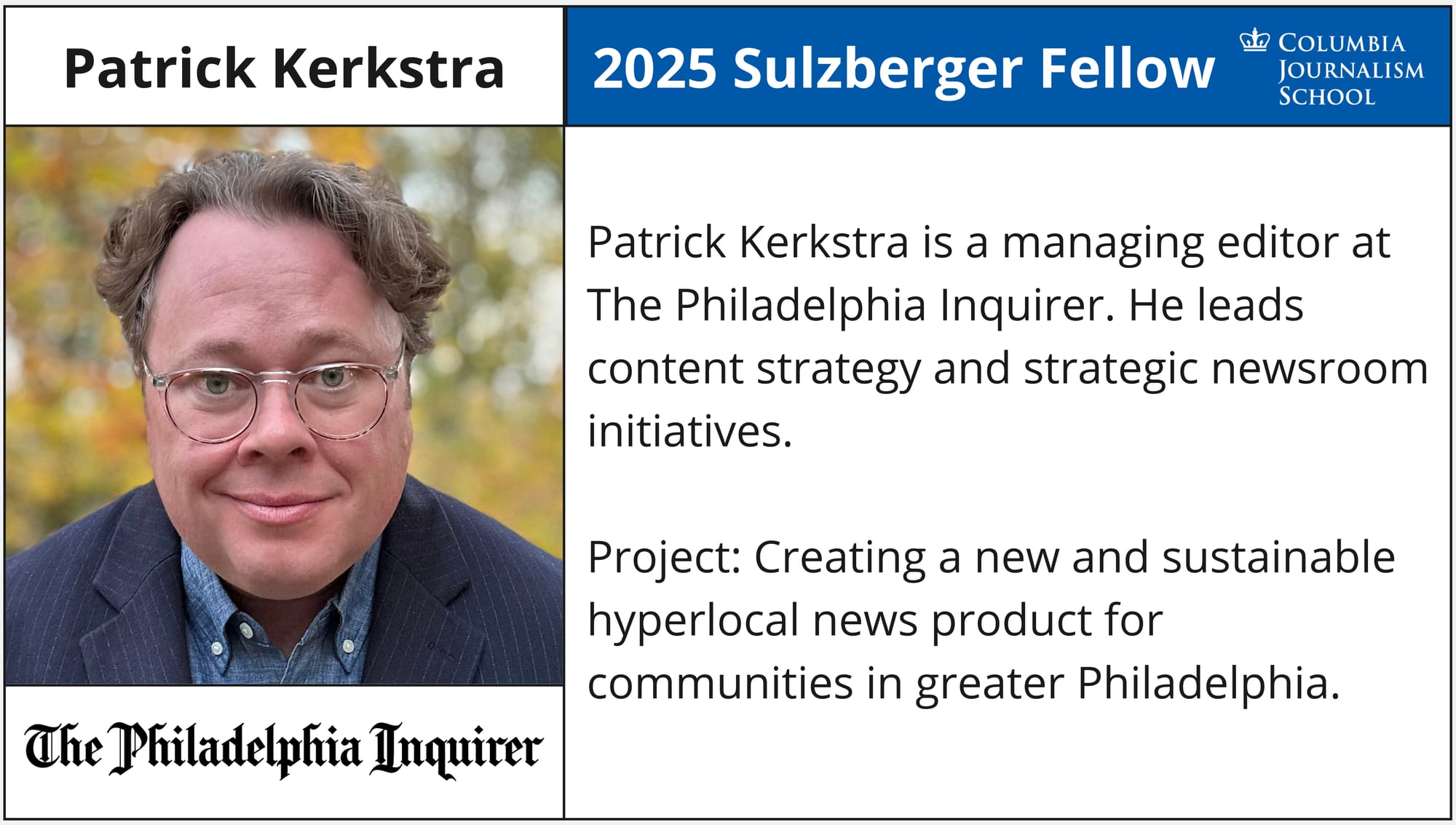 - Patrick Kerkstra - Managing Editor, Content Strategy, Philadelphia Inquirer